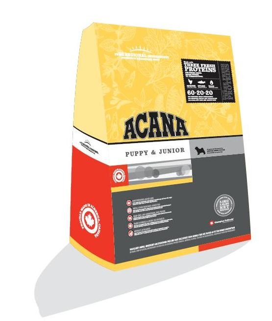 Kompletní krmivo pro štěňata středních plemen Štenata jsou od prírody masožravci, což znamená, že jim vyhovuje potrava bohatá na ruzné druhy masa a menší množství ovoce, zeleniny a travin. Proto je každá granule ACANA PUPPY & JUNIOR doslova nabita masem potravinářské kvality (60%), zahrnujícím volně chovaná kuřata, celá vejce z místních farem a tichomořské lososy lovené u Vancouver Island. Tyto suroviny se DENNE DODÁVAJÍ CERSTVÉ zásadně tedy nejsou mražené a neobsahují konzervační prostředky. Krmivo ACANA obsahuje více proteinů a méně sacharidů. Lépe tak odpovídá přirozené stravě vašeho štěněte. ACANA dále neobsahuje žito, pšenici, kukuřici a lepek, jež často způsobují poruchy zažívání u štěňat, a vyznačuje se místními druhy ovoce, zeleniny a řezaným ovsem z Alberty—zdravými sacharidy s nízkým glykemickým indexem bohatými na betaglukany, jež jsou pro citlivý žaludek vašeho štěňátka naprosto ideální. Čerstvý, zásadně nemražený tichomořský losos je vynikajícím zdrojem nenasycených mastných kyselin omega-3 (EPA a DHA). Tyto kyseliny podporují imunitu, zdraví kůže a lesklou srst vašeho štěněte. Organická mořská zelenina a prérijní byliny, včetně jalovce a kořene proskurníku, jsou přírodním zdrojem antioxidantů a fytoživin, které podporují metabolismus a vyživují celé tělo. Krmivo světové úrovně ACANA se vyrábí z nejlepších a nejčerstvějších kanadských surovin v oceněné rodinné továrně nacházející se ve slunné Albertě. Když si prostudujete jednotlivé přísady, určitě nám dáte za pravdu—ACANA je přírodní a lahodný výrobek, díky němuž bude vaše štěně zdravé a silné. ZARUCENÁ ANALÝZA Dusíkaté látky.................33 % Tuk ................................19 % Vlhkost ..........................10 % Popel ..............................7 % Vláknina ..........................3 % Vápník...........................1,3 % Fosfor.............................1,1% Omega-6.......................2,7 % Omega-3.......................0,4 % Glukosaminu......... 800 mg/kg Chondroitinu.......... 500 mg/kg OBSAH ROSTLINNÝCH SLOŽEK Kořen lopuchu....... 600 mg/kg Kořen ibišku .......... 600 mg/kg Bobule jalovce obecného 500 mg/kg Kořen anděliky ...... 400 mg/kg Kopřiva dvoudomá 400 mg/kg Rakytník úzkolistý.. 400 mg/kg Listy maliníku obecného 300 mg/kg Ostropestřec mariánský 300 mg/kg Složení: Dehydrované kuřecí maso (40%), oves, čerstvé kuřecí maso, hrách, kuřecí tuk (konzervován směsí tokoferolů a rozmarýnu), čerstvý losos, kuřecí játra, čerstvá celá vejce, vojtěška setá, lososí olej, tykev, kuřecí chrupavky, jablka, mrkev, mladé lístky tuřínu, brusinky, bobule oskeruše, ekologicky pěstované mořské rostliny (chaluha, řasa měchýřnatá, mořská řasa dulse), kořen lopuchu, koř. ibišku, bobule jalovce obecného, pískavice řecké seno, fenykl sladký, kořen anděliky lékařské, rakytník úzkolistý, kořen čekanky, kopřiva dvoudomá, listy maliníku obecného, ostropestřec mariánský, lístky máty peprné, květy měsíčku lékařského, květy heřmánku lékařského, lactobacillus acidophilus, enterococcus faecium + vitamíny a minerály. Obsah kalorií: Energie představuje 4250 kcal/kg, 36% energie pochází z proteinů, 38% pochází z tuků a 26% pochází z ovoce, zeleniny a řezaného ovsa.