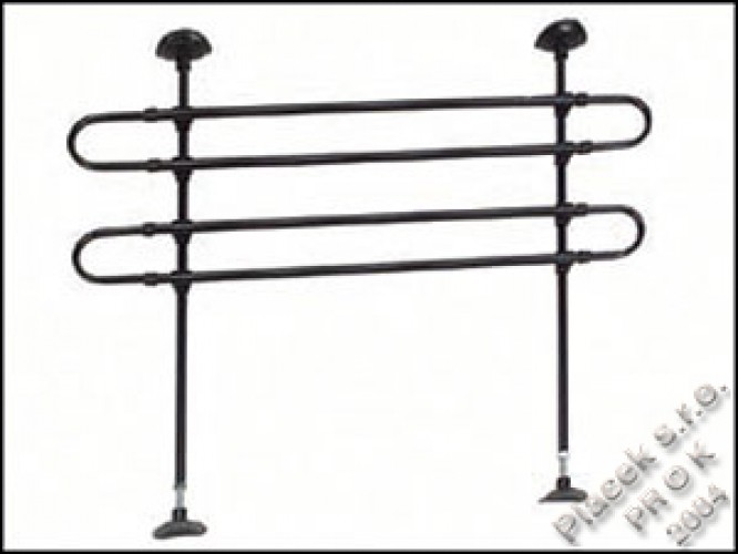 Kovová dvojitá mříž nastavitelná do šířky i výšky. Pro velikost: výška - 84 až 150 cm, šířka 78 až 112 cm.Umisťuje se za přední sedačky.