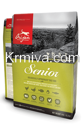 S přibývajícím věkem psů se zhoršuje metabolismus proteinů, které jsou nezbytné pro udržení štíhlého svalstva a dobré kondice starších psů. Pro starší psy je typické, že kromě zvýšené potřeby proteinů potřebují méně kalorií a menší množství sacharidů než mladší psi. Aby ORIJEN SENIOR pokryl zvýšené nároky starších psů na kvalitní masové proteiny, má nejvyšší obsah čerstvých kuřat (krmených obilím), severských síhů (ulovených ve volné přírodě) a celých čerstvých vajec. Každá granule doslova překypuje spoustou masa potravinářské kvality (minimálně 70 %), které je bohatým zdrojem proteinů a váš pes senior je potřebuje –a neobsahuje žádné obiloviny nebo sacharidy, které jsou biologicky nevhodné. ORIJEN místo obilovin obsahuje celou řadu místního ovoce a zeleniny (minimálně 30 %), které patří do přirozené psí potravy a dodávají důležité přírodní antioxidanty a rostlinné látky, které příznivě působí na odolnost dobrou kondici. Směs slunečnicového, lněného a rybího oleje zajišťuje ideální rovnováhu esenciálních mastných kyselin (včetně DHA a EPA), které jsou tak důležité pro zdravou kůži a srst. Přirozená psí potrava obsahuje původní druhy rostlin, mezi něž patří proskurník, kořen čekanky a lopuchu, kopřiva dvoudomá a ostropestřec mariánský. Tyto rostliny dělají rozdíl mezi krmivem, které má dobré nutriční vlastnosti a krmivem, které přispívá i k celkové psychické pohodě psů Pomáhají vyživovat, posilovat a harmonizovat trávicí ústrojí a játra. Krmivo ORIJEN SENIOR obsahuje přírodní zdroj vápníku a fosforu a oceánský zdroj glukosaminu HCL a chondroitinu pro podporu pohyblivosti psů. Myslíme si, že po přečtení složení budete souhlasit s tím, že biologicky vhodný ORIJEN SENIOR je přirozenou a skvělou cestou k udržení síly a zdraví vašeho věrného společníka.